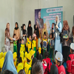 Bunda PAUD Kabupaten Banjar Hj. Nurgita Tiyas menekankan pentingnya membangun kebiasaan literasi sejak dini agar anak memiliki kemampuan berpikir kritis dan komunikasi yang baik.