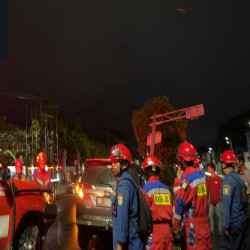 Damkar Banjar Tangani Mobil Laka Tunggal di Depan Taman CBS