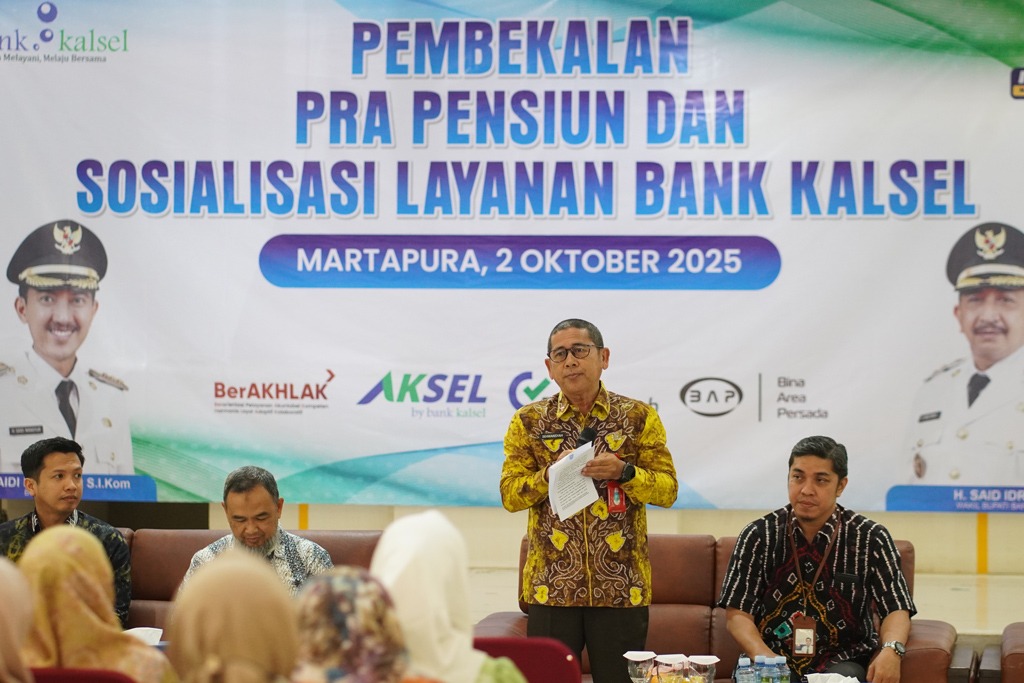 MARTAPURA, InfoPublik – Pemerintah Kabupaten Banjar melalui Badan Kepegawaian dan Pengembangan Sumber Daya Manusia (BKPSDM) bekerja sama dengan Bank Kalsel menggelar kegiatan Pembekalan Pra Pensiun dan Sosialisasi Layanan Bank Kalsel, di Guest House Sultan Sulaiman, Martapura, Kamis (2/10/2025) pagi.