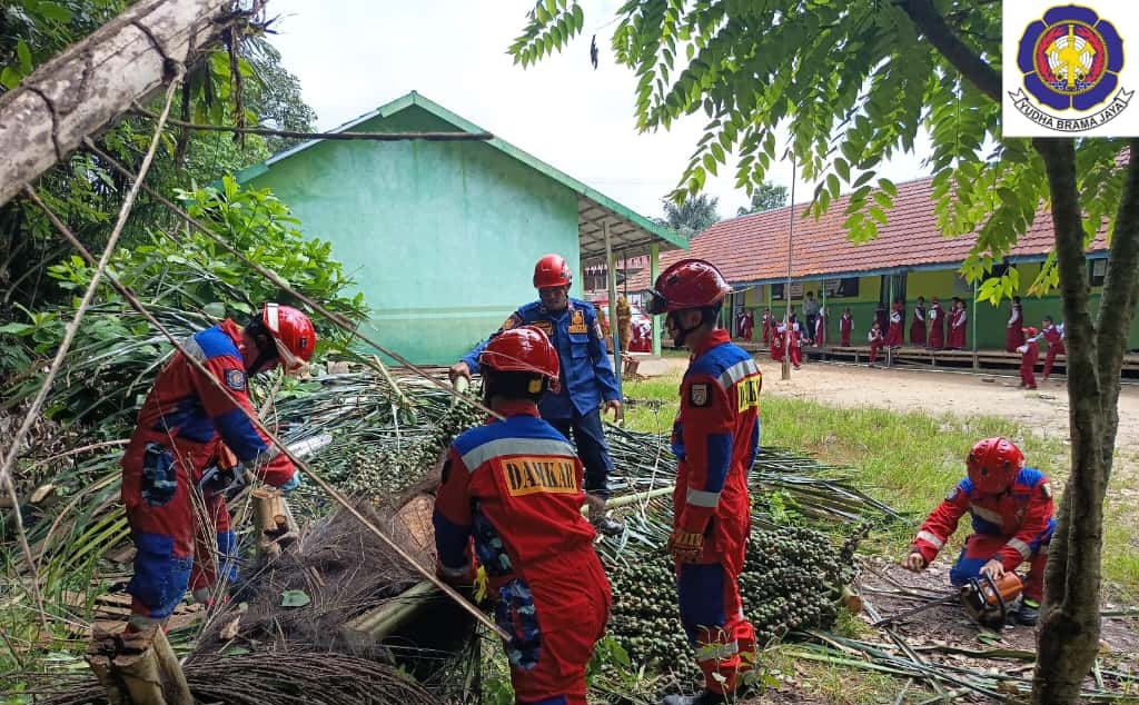 Kabid Pemadaman Penyelamatan dan Sapras M. Kasyaf R mengatakan batang pohon sempat menggangu aktifitas Sekolah sebelum tim Rescue Dinas Damkar berhasil membersihkan.