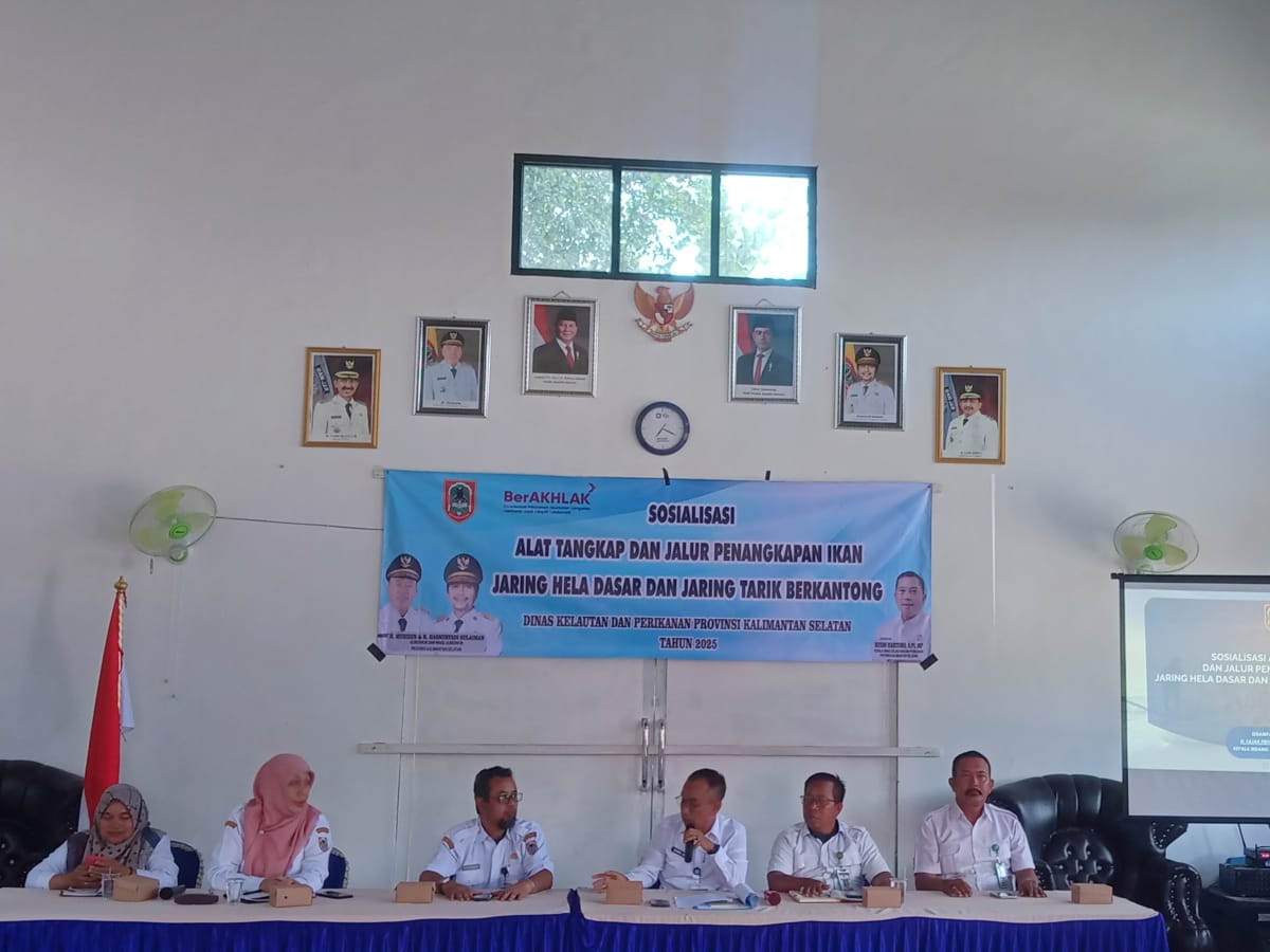 ALUH ALUH, InfoPublik - Dinas Kelautan dan Perikanan (DKP) Kalimantan Selatan menggelar Sosialisasi Sosialisasi Alat Tangkap dan jalur Penangkapan Ikan jaring Hela dasar dan Jaring Tarik Berkantong di Kecamatan Aluh-Aluh, Kabupaten Banjar, Rabu (8/10/2025).