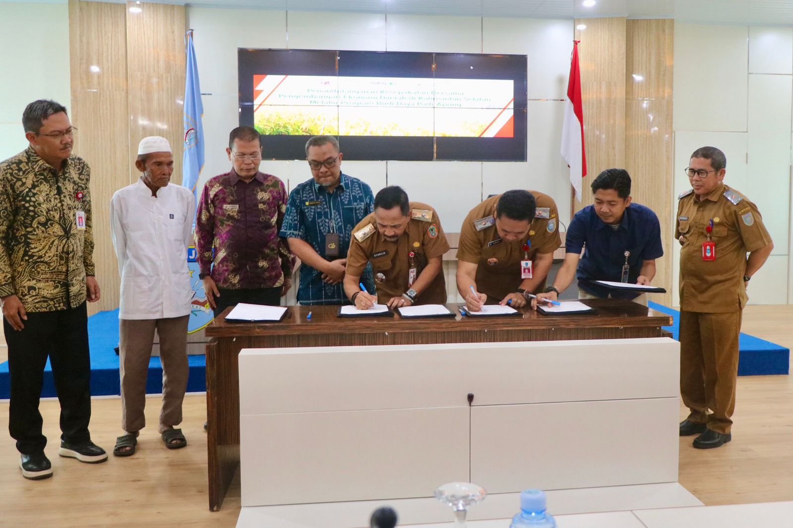 Penandatanganan komitmen ini melibatkan Kepala Dinas Ketahanan Pangan Provinsi Kalimantan Selatan H Syamsir Rahman, Kepala Dinas Pertanian Kabupaten Banjar Warsita, Kepala BPJS Ketenagakerjaan Banjarmasin, Manager Perum Bulog Banjarmasin, Direktur Utama BPR Martapura, serta Ketua Kelompok Tani Sukamaju.