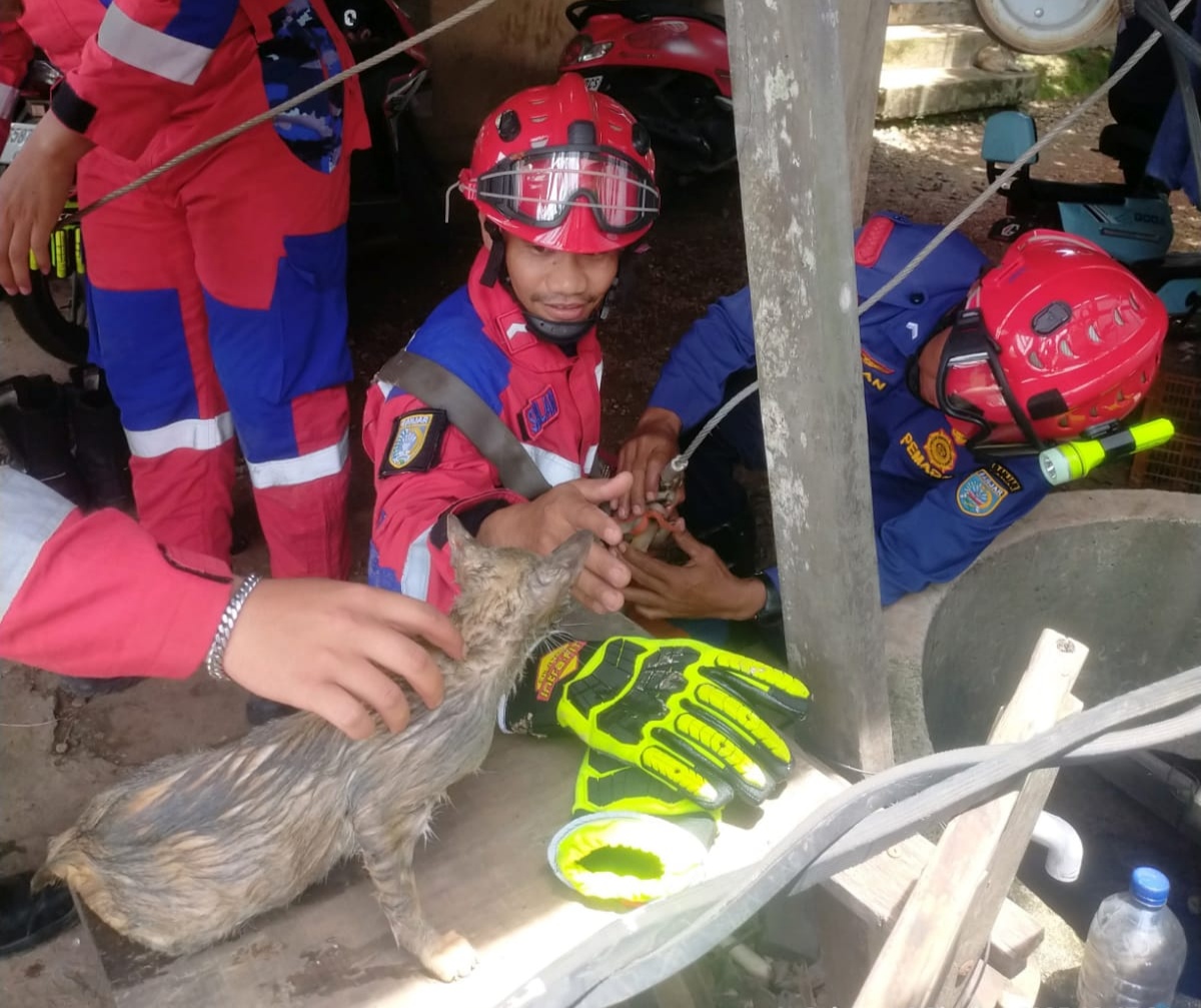 "Kita evakuasi kucing dari sumur warga tersebut dengan menggunakan alat rescue," kata Kasyaf.