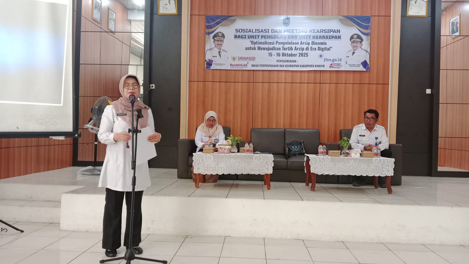 BANJAR, InfoPublik – Staf Urusan Umum dan Kepegawaian (Umpeg) Kecamatan Karang Intan Rusmiyansyah menghadiri kegiatan Sosialisasi Kearsipan dan Meeting Kearsipan yang dilaksanakan di Aula Kecamatan Martapura pada Rabu (15/10/2025).
