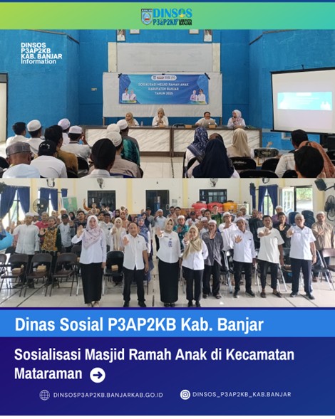 MARTAPURA, InfoPublik – Dinas Sosial Pemberdayaan Perempuan Perlindungan Anak Pengendalian Penduduk Keluarga Berencana (Dinsos P3AP2KB) Kabupaten Banjar terus berkomitmen dalam pemenuhan hak anak dengan menyelenggarakan kegiatan Sosialisasi Masjid Ramah Anak (MRA). Bertempat di Aula Kecamatan Mataraman, Rabu (15/10/2025), kegiatan yang bertujuan menciptakan lingkungan ibadah yang aman, nyaman, dan ramah terhadap anak ini dibuka secara resmi oleh Kabid PPPA, Ibu Merilu Ripner, SE., M.Sos Dinsos P3AP2KB Kabupaten Banjar. Dalam sambutannya sekaligus pemaparan materi, Kepala Bidang PPPA menjelaskan bahwa Masjid Ramah Anak (MRA) adalah masjid yang mendukung pemenuhan hak dan perlindungan khusus anak dengan menyediakan fasilitas, program, dan lingkungan yang ramah anak. Ini mencakup ketersediaan ruang bermain, sarana edukasi, toilet terpisah, hingga kebijakan anti kekerasan dan diskriminasi. Sosialisasi ini menjadi sangat penting untuk dilakukan mengingat masjid sebagai pusat kegiatan umat, harus menjadi tempat yang paling aman dan menyenangkan bagi anak-anak agar mereka dapat tumbuh dan beribadah dengan optimal tanpa rasa takut. Masjid ramah anak merupakan bagian dari upaya mewujudkan Kabupaten Layak Anak (KLA). Kegiatan ini menghadirkan narasumber dari Bidang PPPA Dinsos P3AP2KB Kabupaten Banjar, Dinas PPPAKB Provinsi Kalimantan Selatan, serta dari Bagian Kesejahteraan Rakyat (Kesra) Sekretariat Daerah Kabupaten Banjar. Peserta yang hadir tidak hanya berasal dari perwakilan Kecamatan Mataraman, tetapi juga melibatkan elemen terkait seperti pengurus masjid, tokoh agama, dan tokoh masyarakat dari kecamatan lain, yaitu Astambul, Simpang Empat, dan Pengaron. Hal ini menunjukkan komitmen untuk memperluas jangkauan implementasi MRA di Kabupaten Banjar. Adapun tujuan utama dari kegiatan sosialisasi ini adalah meningkatkan pemahaman dan kesadaran pengelola masjid serta masyarakat mengenai konsep Masjid Ramah Anak, serta mendorong terbentuknya kebijakan dan fasilitas di masjid yang mendukung pemenuhan hak dan perlindungan anak, sehingga tercipta ruang publik yang inklusif bagi anak-anak. Penulis & Editor Rima & Alven: Dinsos P3AP2KB Kab. Banjar