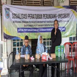 Dinas Pertanian Kabupaten Banjar (Distan) bersama Dewan Perwakilan Rakyat Daerah (DPRD) Kabupaten Banjar menggelar sosialisasi peraturan perundang-undangan dihalaman rumah Ketua RT 03 Desa Pemajatan Kecamatan Gambut, Kamis (16/10/2025).