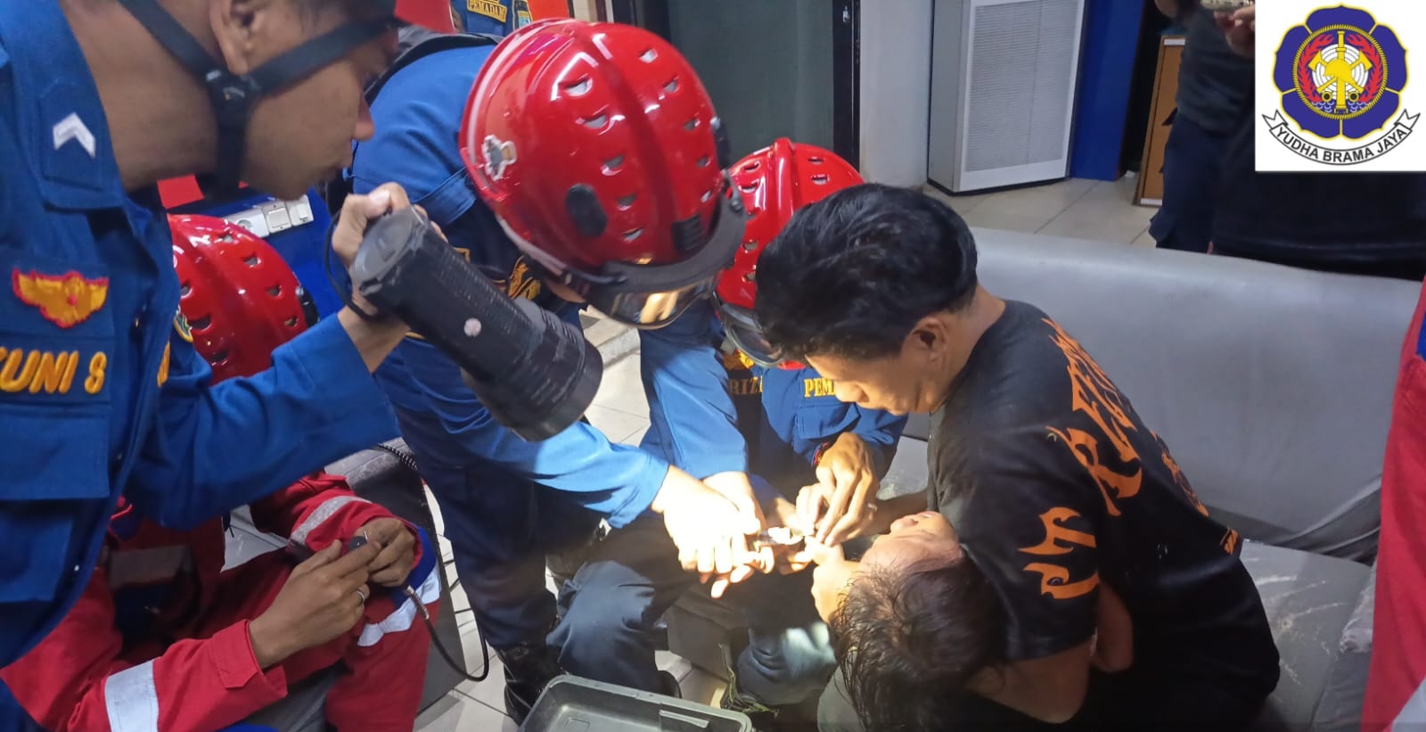 "Awalnya di mainkan biasa aja, kemudian anaknya memasukkan ke jari dan tidak bisa lepas lagi. Setelah itu langsung mendatangi MAKO Damkar" kata Kasyaf.
