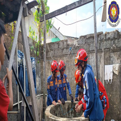 Personel damkar diterjunkan untuk evakuasi bangkai kucing tersebut. Butuh waktu sekitar ± 15 menit bagi petugas untuk evakuasi.