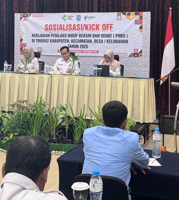 BANJARBARU, InfoPublik – Dalam rangka mendukung upaya peningkatan derajat kesehatan masyarakat, Dinas Kesehatan (Dinkes) Kabupaten Banjar melaksanakan kegiatan Sosialisasi sekaligus Kick Off Kebijakan Perilaku Hidup Bersih dan Sehat (PHBS) yang dilaksanakan di Roditha Hotel, Kota Banjarbaru, Rabu (22/10/2025).