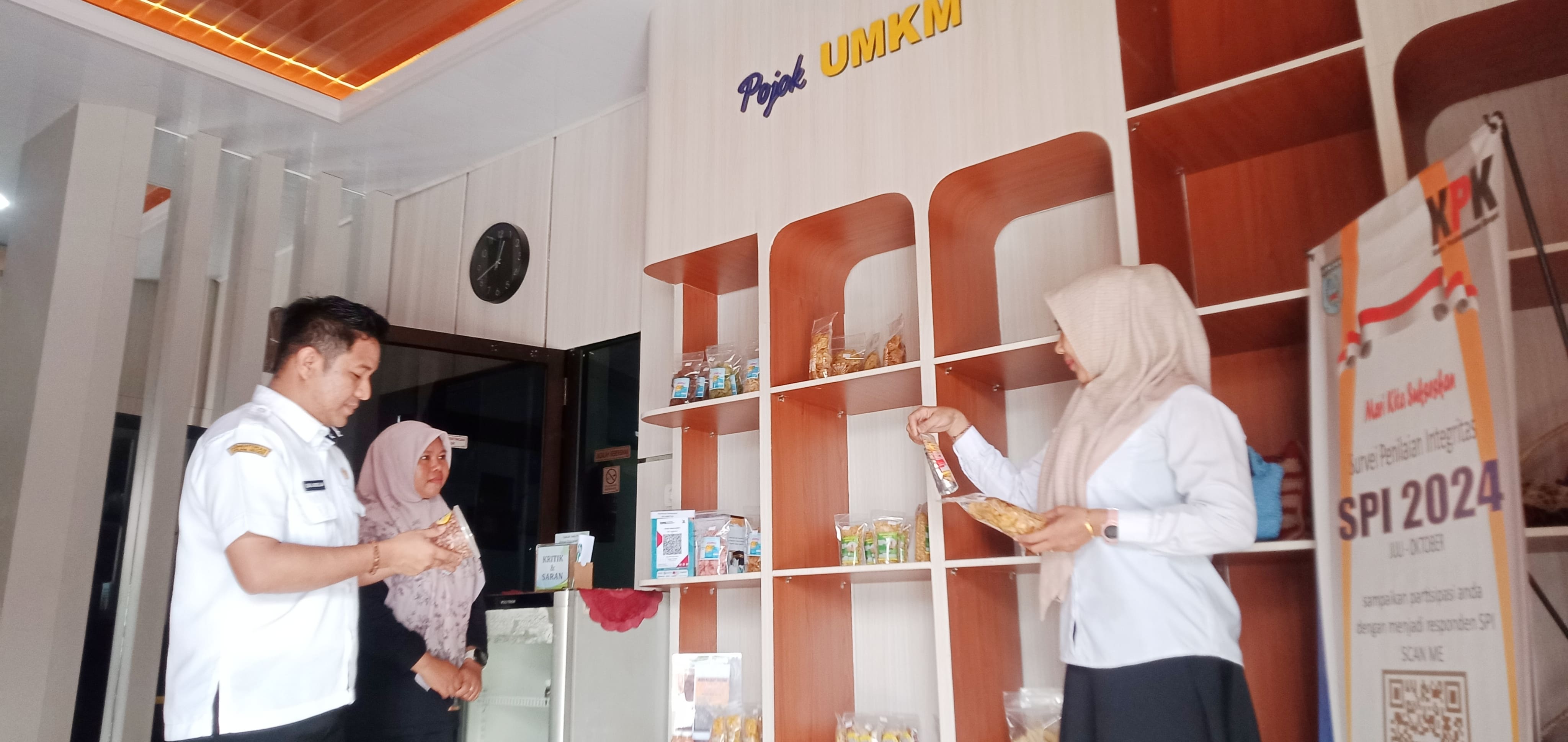 Kepala Bidang Pemberdayaan Kelembagaan Masyarakat Sosial Dasar Dinas Pemberdayaan Masyarakat dan Desa Farida Ariyati kunjungi dan berbelanja di Pojok Usaha Mikro Kecil dan Menengah (UMKM) Kecamatan Gambut. Rabu, (22/10/2025).