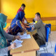 Farida Ariyanti disambut Ketua Tim Penggarak PKK Kecamatan Gambut Maya Handayani dan dilayani Staf Seksi Kesejahteraan Sosial Kecamatan Gambut Nuri Firnida.