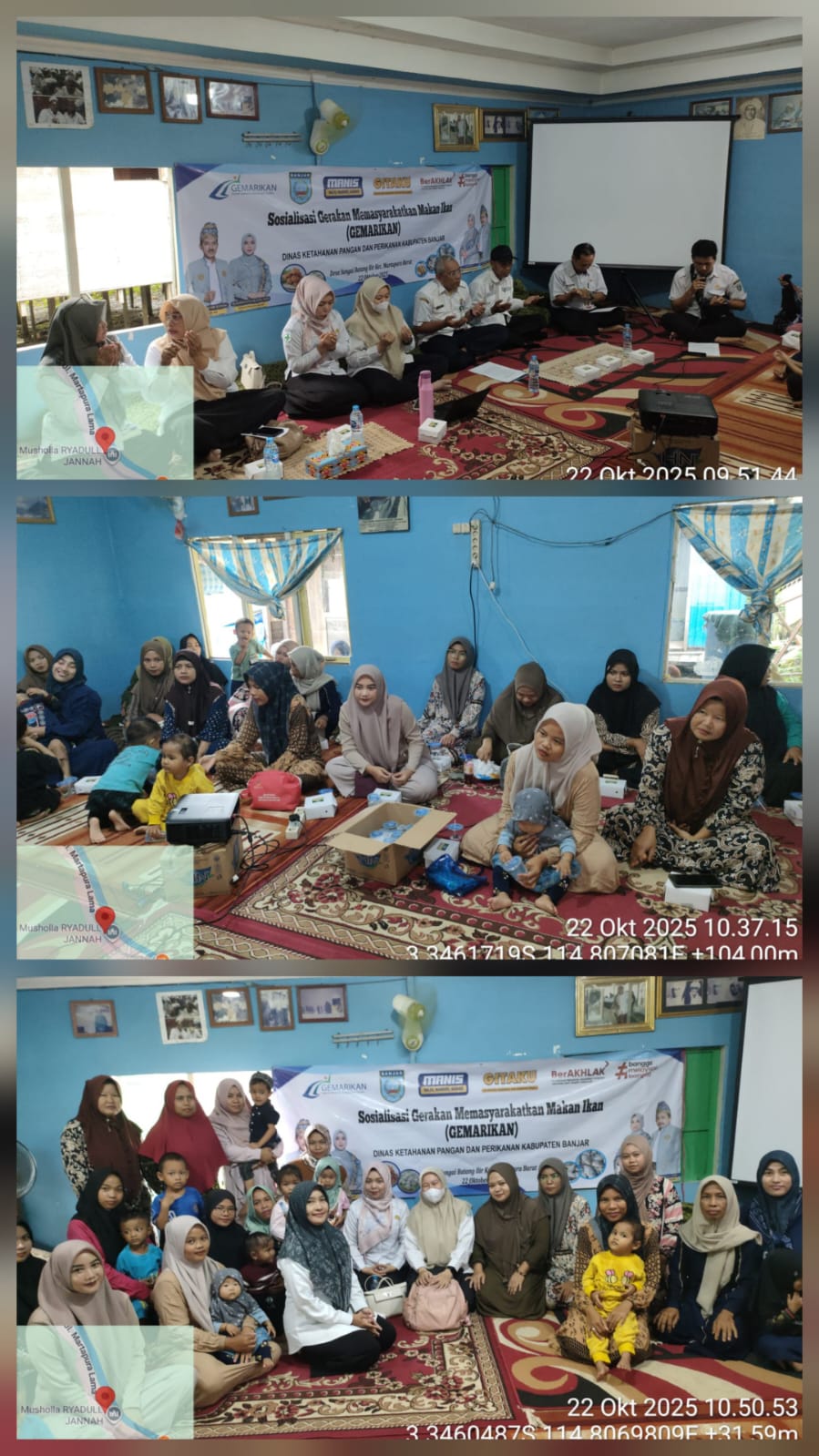 Banjar, Infopublik - Dinas Ketahanan Pangan dan Perikanan (DKPP) melaksanakan Kegiatan Sosialisasi Gemarikan ( Gerakan Memasyarakatkan Gemar Ikan ), yang diikuti oleh masyarakat desa sungai batang Ilir yang terdata sebagai Keluarga Beresiko Stunting (KRS). pada Kamis 23/10/2025.