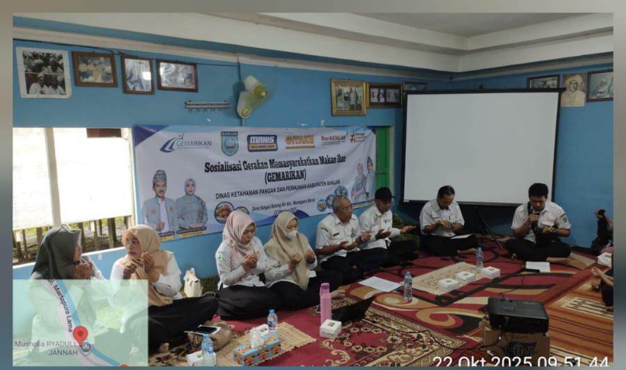 BANJAR, Infopublik - Dinas Ketahanan Pangan dan Perikanan (DKPP) menggelar Sosialisasi Gerakan Memasyarakatkan Gemar Ikan (Gemarikan) di Desa Sungai Batang Ilir, Kecamatan Martapura Barat, Kamis (23/10/2025) kegiatan ini diikuti masyarakat yang terdata sebagai Keluarga Beresiko Stunting (KRS).