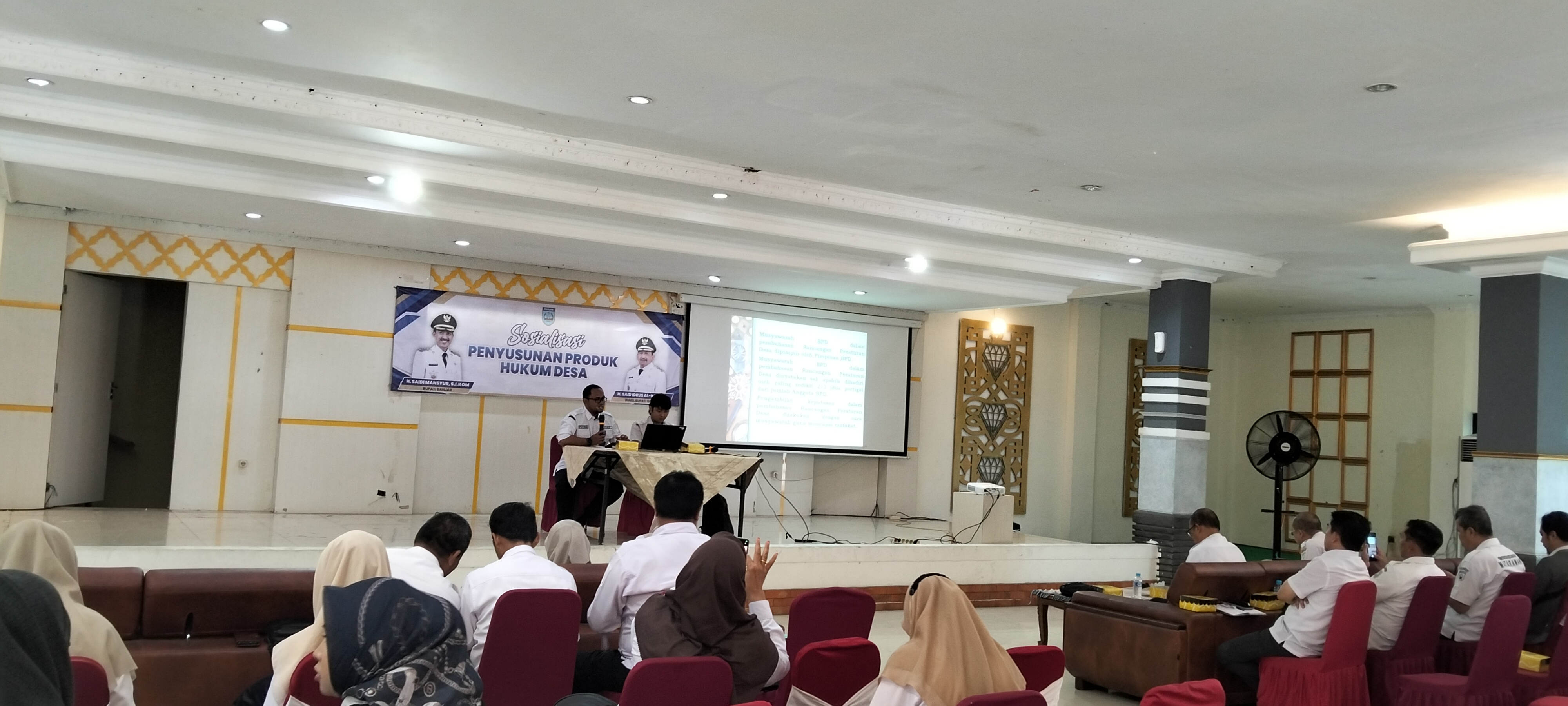 Bagian Hukum Setda Banjar Putra menyampaikan rancangan Peraturan Desa yang telah disusun wajib dikonsultasikan kepada masyarakat desa dan dapat dikonsultasikan pulang kepada camat untuk mendapatkan masukan.