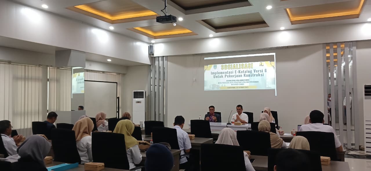 MARTAPURA, InfoPublik - Dinas Pekerjaan Umum, Penataan Ruang dan Pertanahan (PUPRP) Kabupaten Banjar menggelar Sosialisasi Implementasi E-Katalog Versi 6 untuk Pekerjaan Konstruksi, yang dilaksanakan pada Rabu (29/10/2025) di Aula Mandiri Lantai III Kantor Dinas PUPRP Kabupaten Banjar.