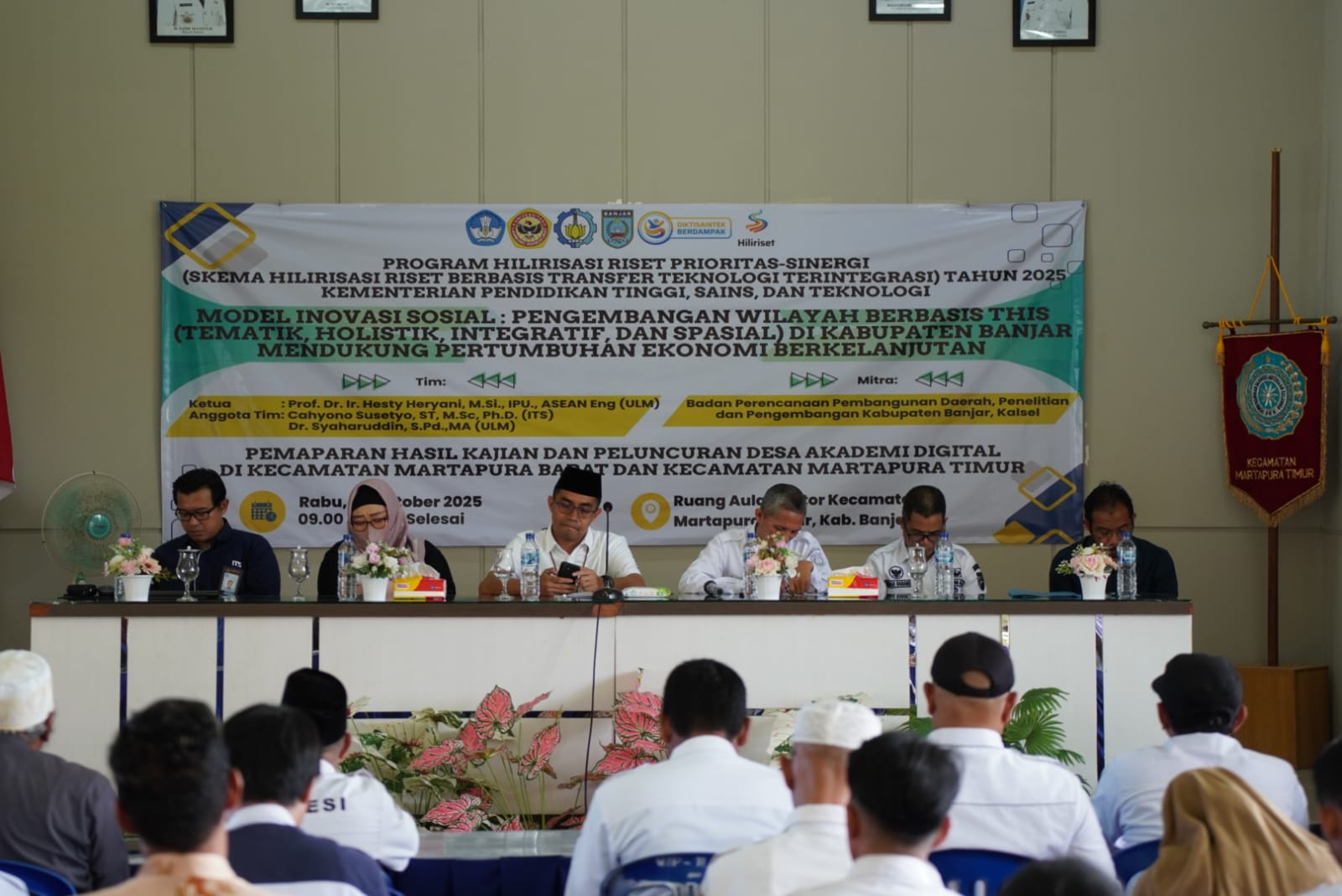 Acara peluncuran ini merupakan bagian dari Program Hilirisasi Riset Prioritas Sinergi Tahun 2025 oleh Kementerian Pendidikan Tinggi, Sains dan Teknologi, yang juga diisi dengan pemaparan hasil kajian serta diskusi bersama tim peneliti. (Media Center Banjar/Ronny/Man)