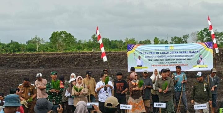 Acara Tanam Padi perdana ini di selenggarakan langsung oleh Dinas Pertanian (Distan) Kabupaten Banjar bersama dengan Kepala Badan Penyuluhan dan Pengembangan SDM Pertanian, penanaman langsung padi perdana pada lahan Cetak Sawah Rakyat (CSR) diselenggarakan di Desa Tambak Padi Kecamatan Beruntung Baru, Selasa (4/11/2025).