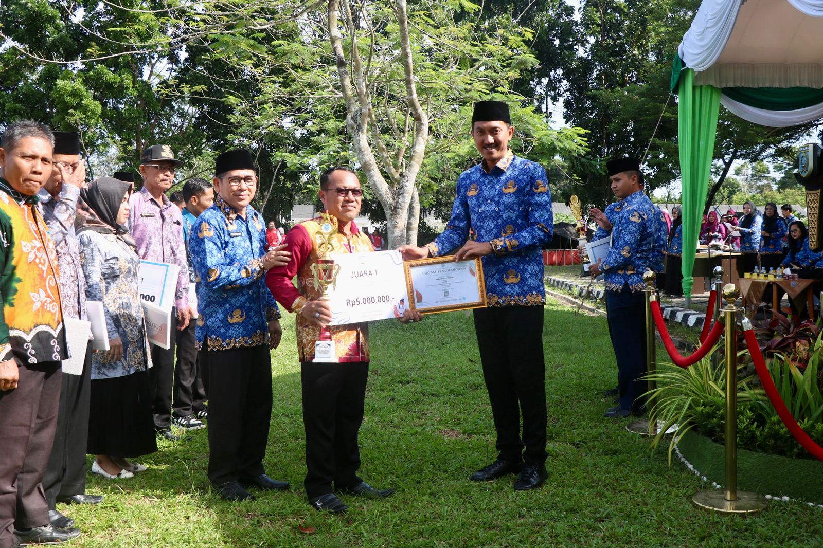 Usai apel, dilakukan penyerahan penghargaan Swastisaba Kabupaten/Kota Sehat. Kabupaten Banjar meraih kategori Wiwerda tingkat Provinsi Kalsel, yang diserahkan Bupati Banjar didampingi Pj Sekda H Ikhwansyah kepada Plt Kepala Dinas Kesehatan Noor Ipansyah.