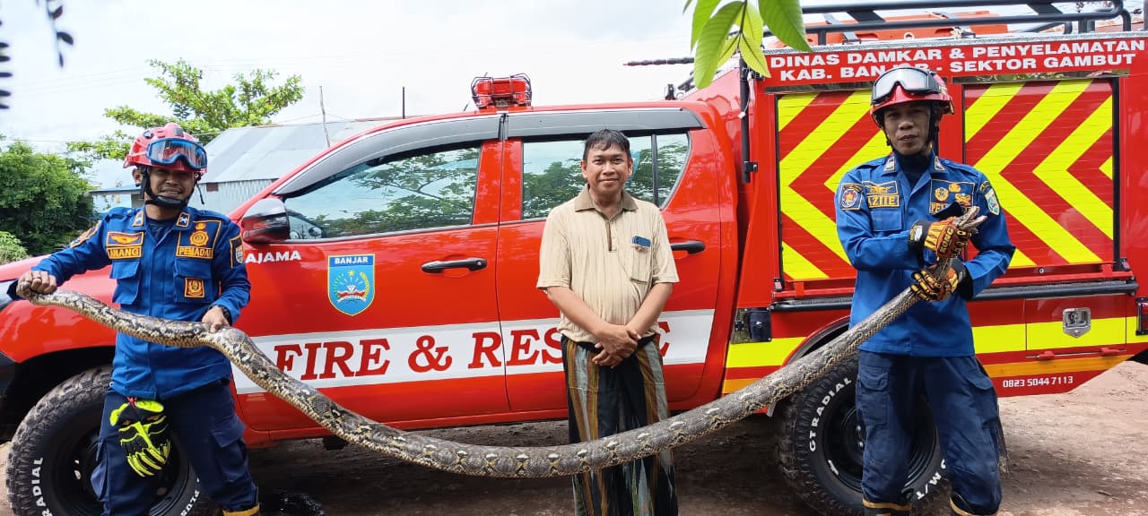 Petugas Damkar Banjar Sektor Gambut berhasil menangkap ular phyton/sanca batik berukuran ± 3,5 meter, di Jalan Pahlawan RT 1 RW 1 Kelurahan Malintang Kecamatan Gambut, Minggu (16/11/2025)
