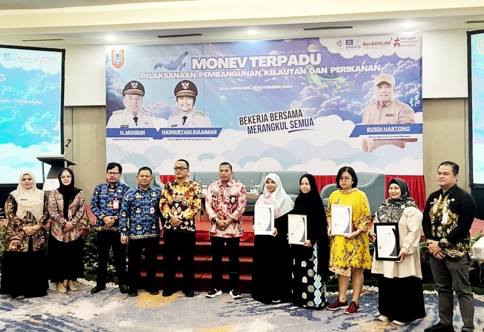 Sertifikat SNI diserahkan oleh Krpala Dinas Kelautan dan Perikanan Provinsi Kalsel Rusdi Hartono didampingi Kepala UPT Balai Penerapan Mutu Hasil Perikanan (BPMHP) Kalsel Yudita Nurdiana serta Plt. Kepala Bidang Pembinaan dan Pengawasan Usaha Perikanan Kabupaten Banjar Muhammad Hamdani, di Hotel Rattan Inn, Senin (17/11/2025).