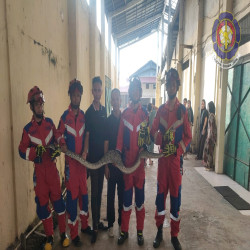 "Saat itu, infonya ada ular berukuran ± 3 meter berada di sela-sela atap dan plafon," ujar Kasyaf