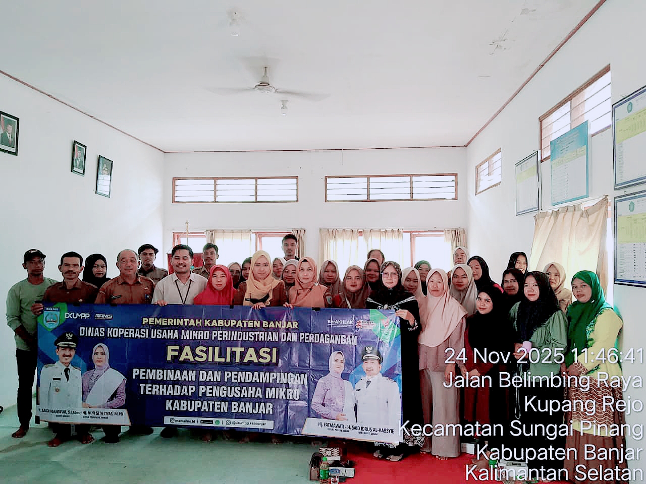 Dinas Koperasi, Usaha Mikro, Perindustrian dan Perdagangan (DKUMPP) Kabupaten Banjar melakukan Fasilitasi Pembinaan dan Pendampingan terhadap UMKM Kelompok Inklusif di Kecamatan Sungai Pinang, Senin (24/11/2025).
