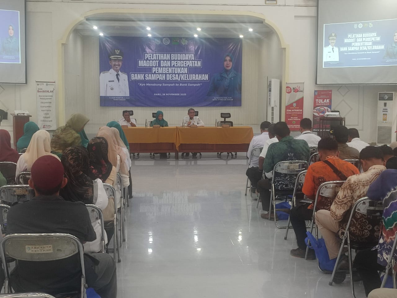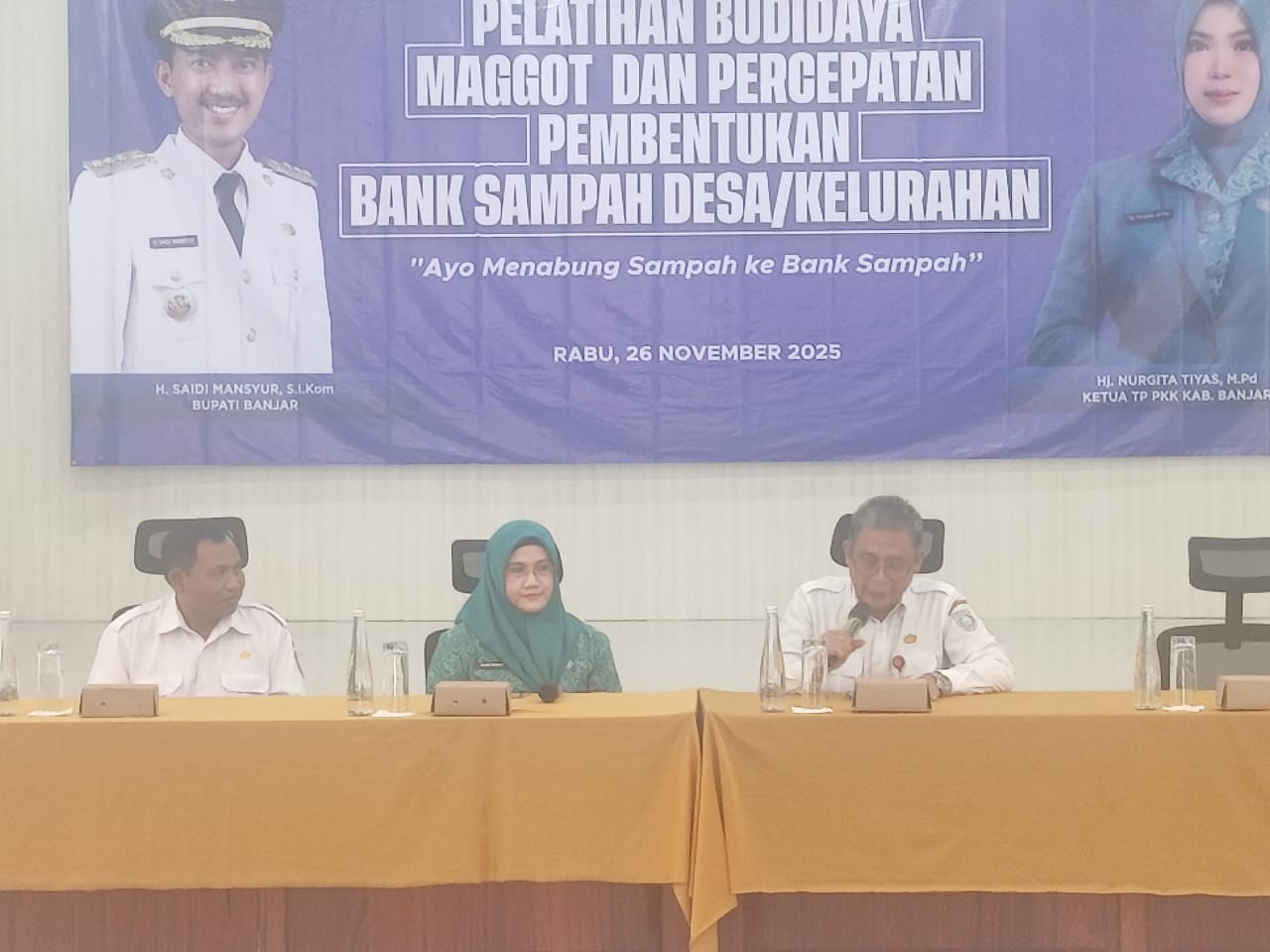 MARTAPURA, InfoPublik - Pemerintah Kabupaten Banjar melalui Dinas Perumahan Rakyat, Kawasan Permukiman dan Lingkungan Hidup (DPRKPLH) menggelar Pelatihan Budidaya Maggot dan Percepatan Pembentukan Bank Sampah Desa/Kelurahan ,di Aula Wisma Sultan Sulaiman BKPSDM Banjar, Martapura, Rabu (26/11/2025) pagi.