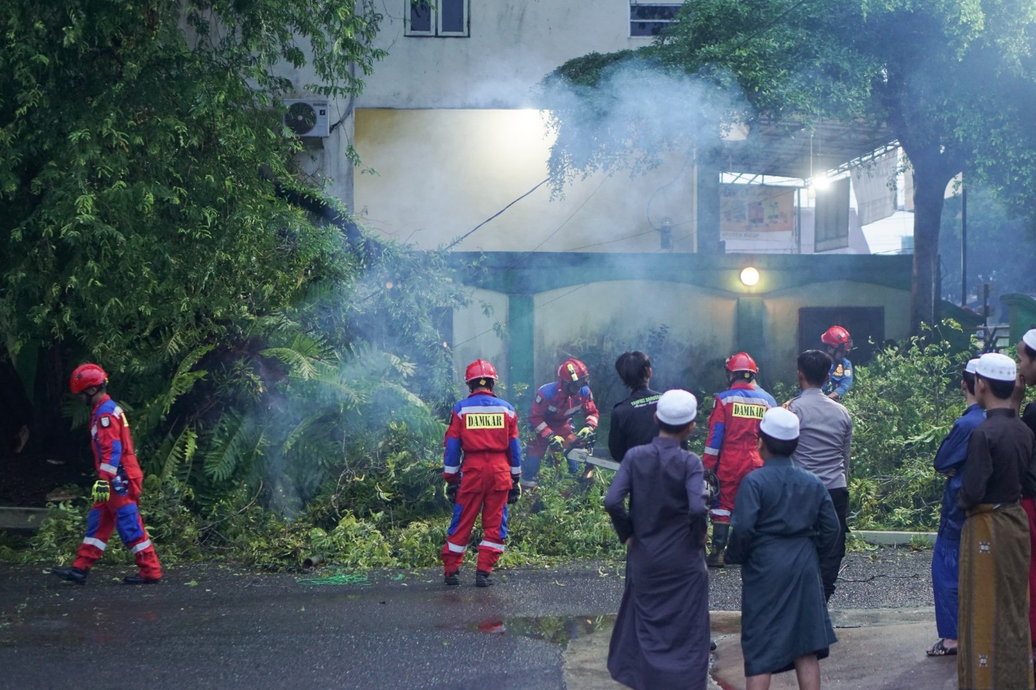 Pohon tumbang pertama diamankan di Madrasah Darussalam Tahfiz Tanjung Rema Martapura Kab Banjar, Sabtu (30/11/2025) pukul 17:51 wita. Mengganggu aktifitas Madrasah, karena pohon tumbang tepat berada di halaman parkir.