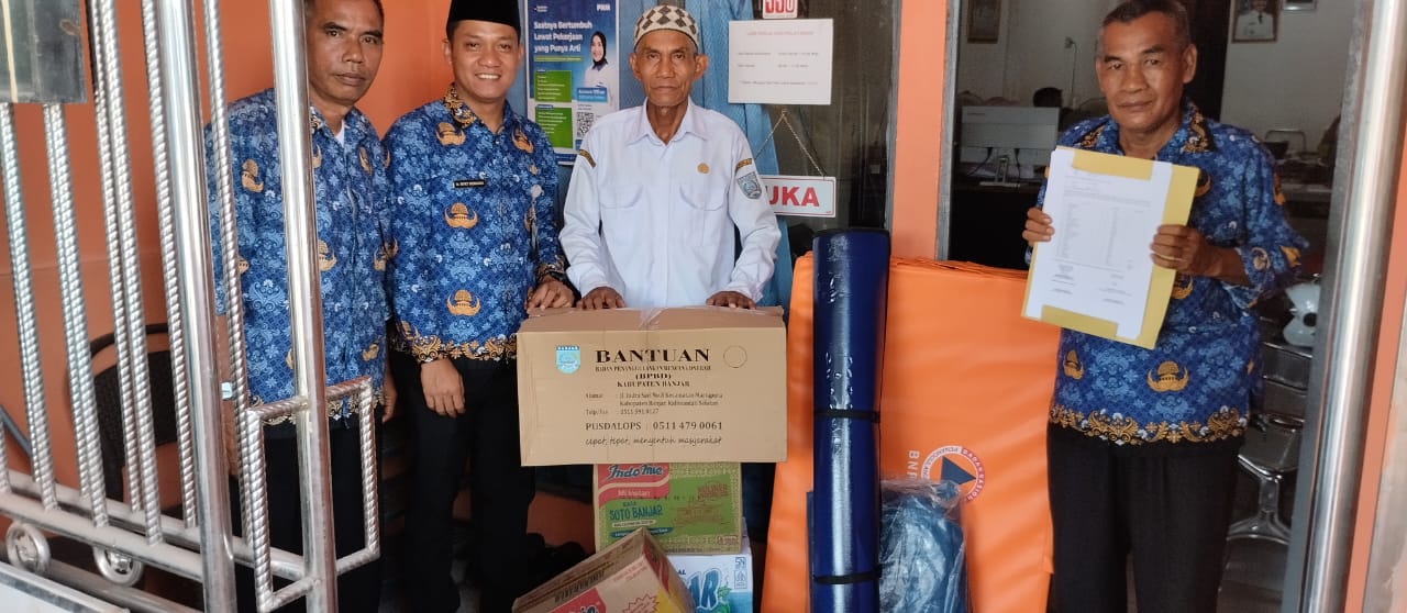 Bantuan berupa kebutuhan dasar kedaruratan tersebut diserahkan langsung kepada Kantor Desa Sungai Tabuk Kota. Selanjutnya pihak desa akan menyalurkannya kepada korban yang rumahnya mengalami rusak berat dalam peristiwa tersebut.