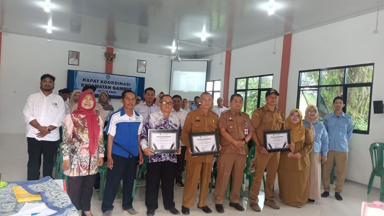 Pemerintah Kecamatan Gambut serahkan piagam penghargaan terhadap desa yang dianggab bagus dalam pelaksanaan administrasi desa. Penyerahan dilaksanaan dalam Rapat Koordinasi Kecamatan Gambut di Aula Kecamatan Gambut. Selasa, (2/12/2025).