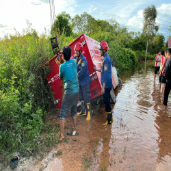 Dengan kejadian tersebut mobil ditarik menggunakan crank dan winch. Setelah ± 30 menit kemudian baru mobil bisa terangkat dan kemudian diamankan. (BRIGADE/DPKP/SEKTORGAMBUT/SAY17)