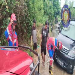 Supir mobil Jamri panik, pasalnya mobil yang ia kendarai terperosok.