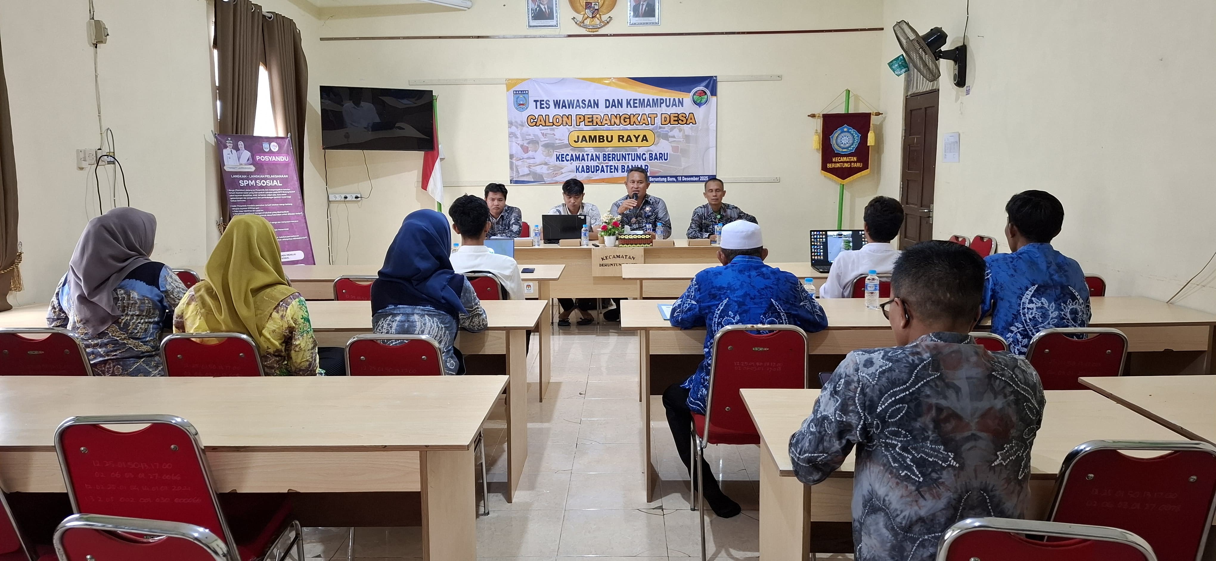 BERUNTUNG BARU, InfoPublik – Pemerintah Desa Jambu Raya, Kecamatan Beruntung Baru, Kabupaten Banjar, menggelar kegiatan Tes penjaringan perangkat Desa di Aula Kecamatan Beruntung Baru pada Kamis (18/12/2025) pagi.