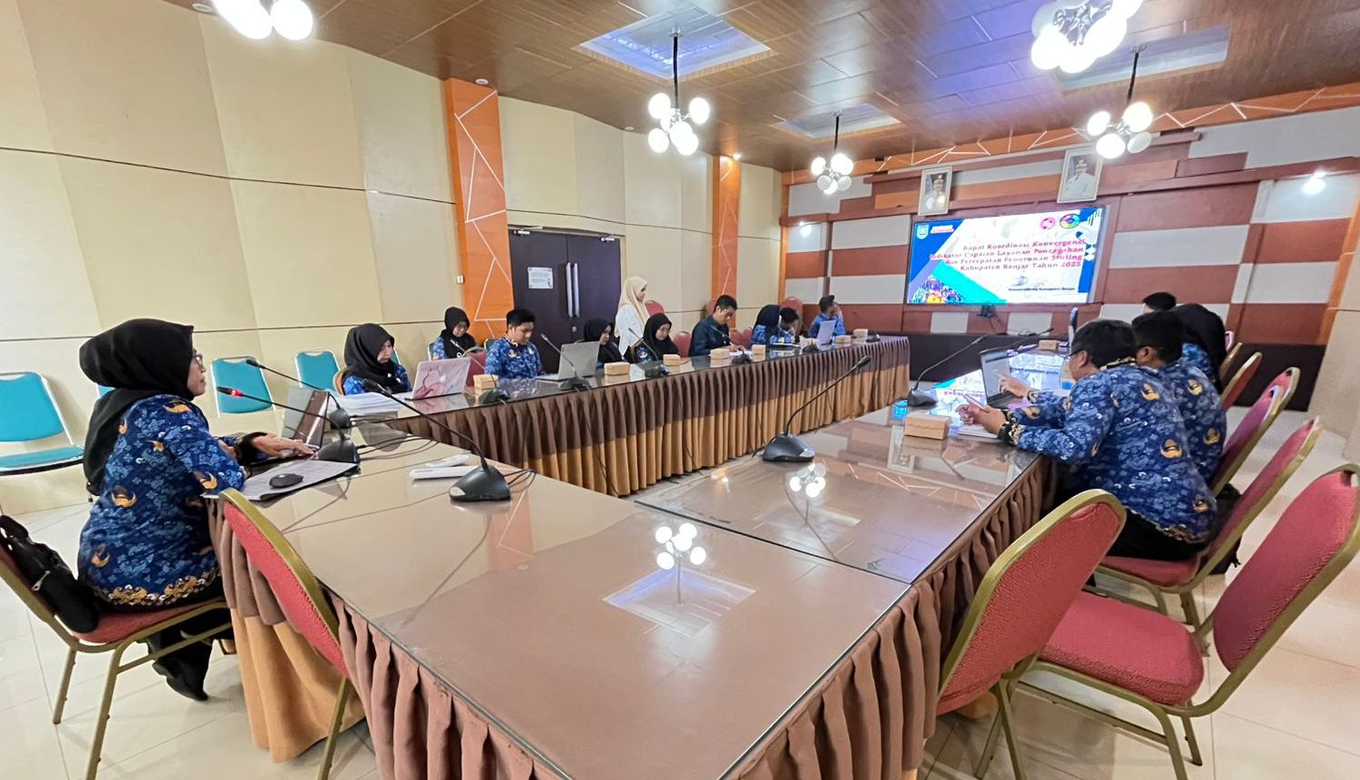 MARTAPURA- Dalam upaya memperkuat arah pembangunan tematik serta meningkatkan efektivitas koordinasi lintas sektor, Bidang Pemerintahan dan Pembangunan Manusia (PPM) Bappedalitbang Kabupaten Banjar menggelar Rapat Koordinasi Pembangunan Tematik Sektor Pemerintahan dan Pembangunan Manusia. Kegiatan ini dilaksanakan pada Rabu (17/12/2025) siang dan berlangsung di Aula Bauntung, Lantai III Bappedalitbang Banjar.
