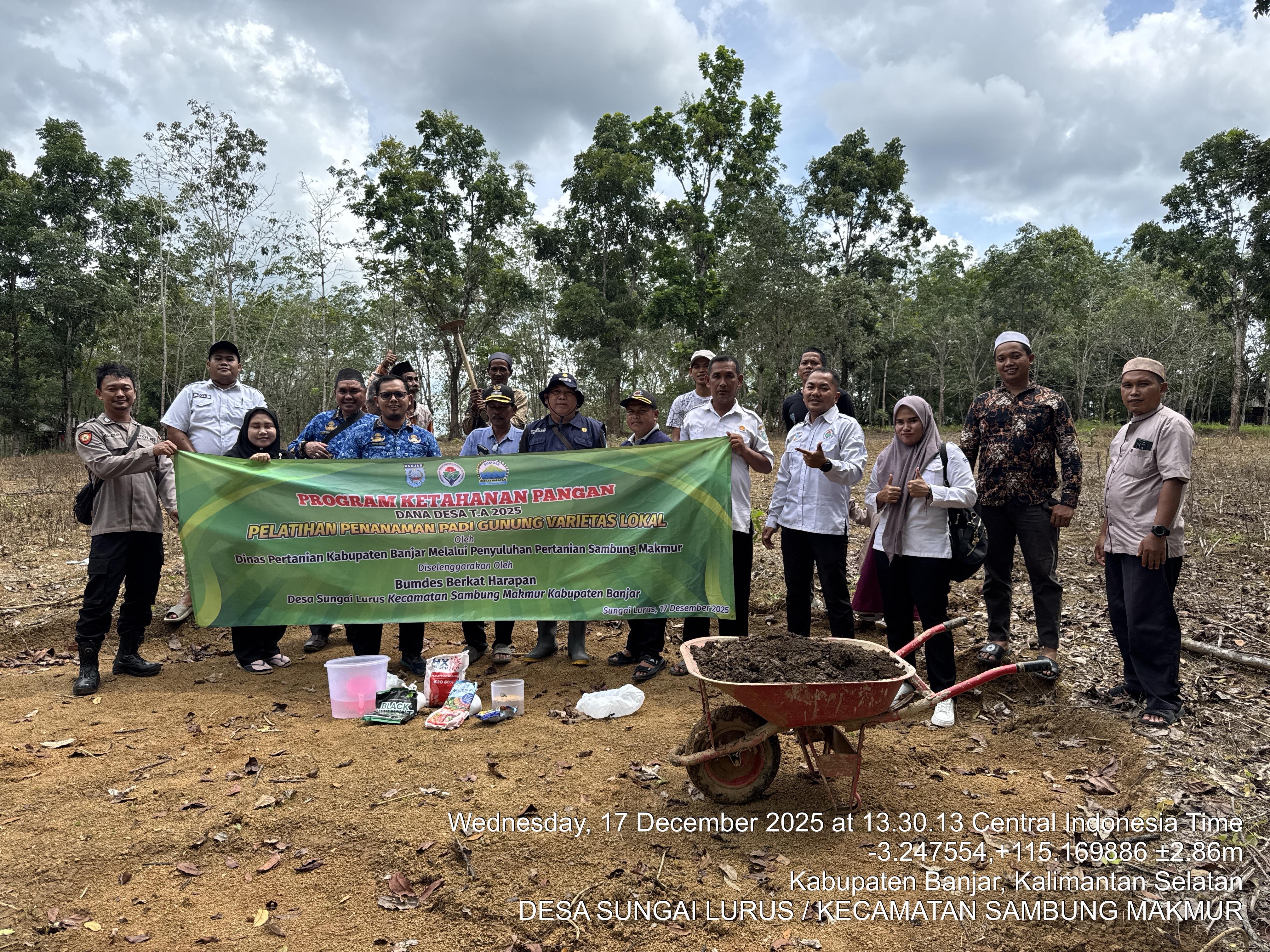 BANJAR, InfoPublik – Dinas Pertanian Kabupaten Banjar melalui Balai Penyuluhan Pertanian (BPP) Sambung Makmur sukses menggelar kegiatan penyuluhan, pelatihan, sekaligus praktik lapangan penanaman Padi Gogo Varietas Lokal (Buyung) di lahan kering Desa Sungai Lurus, Kecamatan Sambung Makmur, Rabu (17/12/2025).