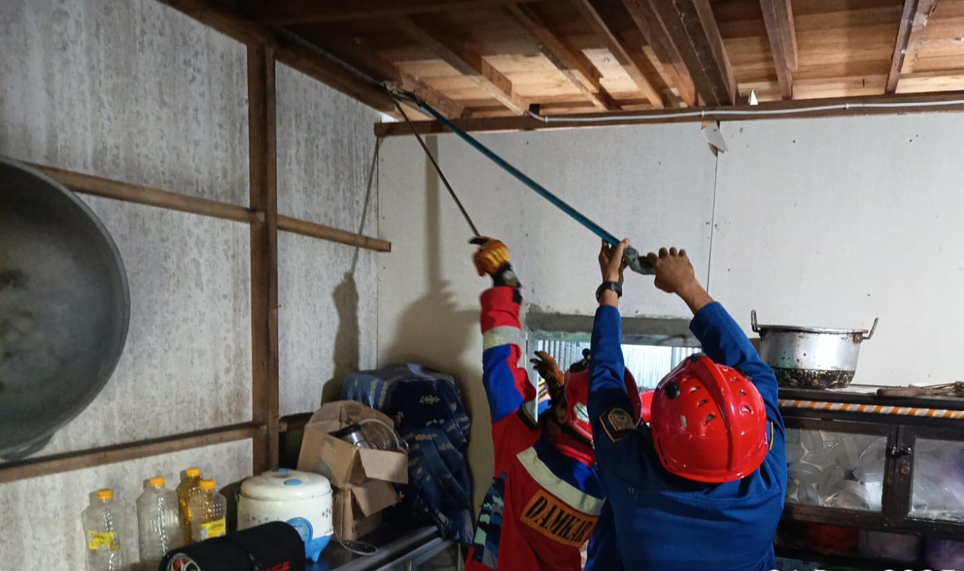 Damkar Banjar Tangani Ular di Plafon Dapur