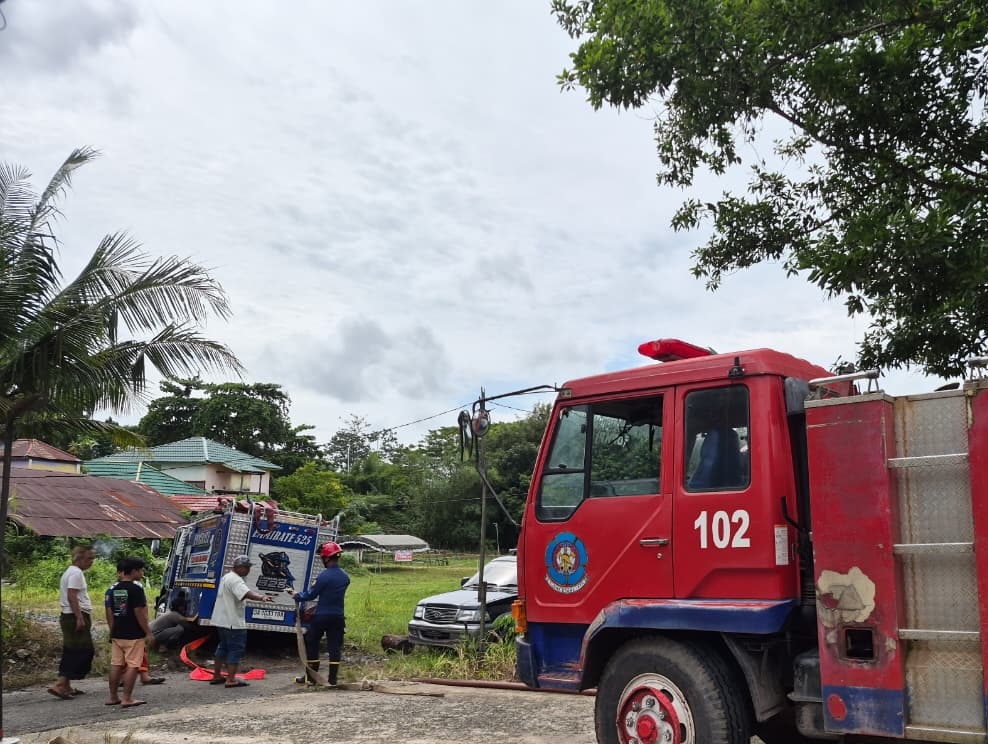 "Mobil ini mau arah pulang karena sisa air sudah sedikit. Namun saat di perjalanan pulang jalan yang dilalui tidak kuat menahan berat mobil, mobil pun terperosok," terangnya.