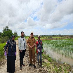 Kepala Dinas Pertanian Banjar Warsita hadir langsung memimpin peninjauan ini didampingi, Koordinator Balai serta PPL Beruntung Baru, dan petani setempat.