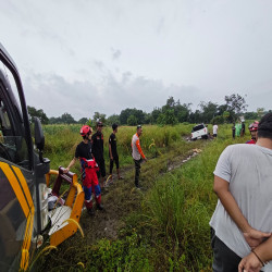 Mobil tersebut dilaporkan terperosok ke area berlumpur di sisi jalan, sehingga tidak dapat melanjutkan perjalanan dan membutuhkan bantuan evakuasi.
