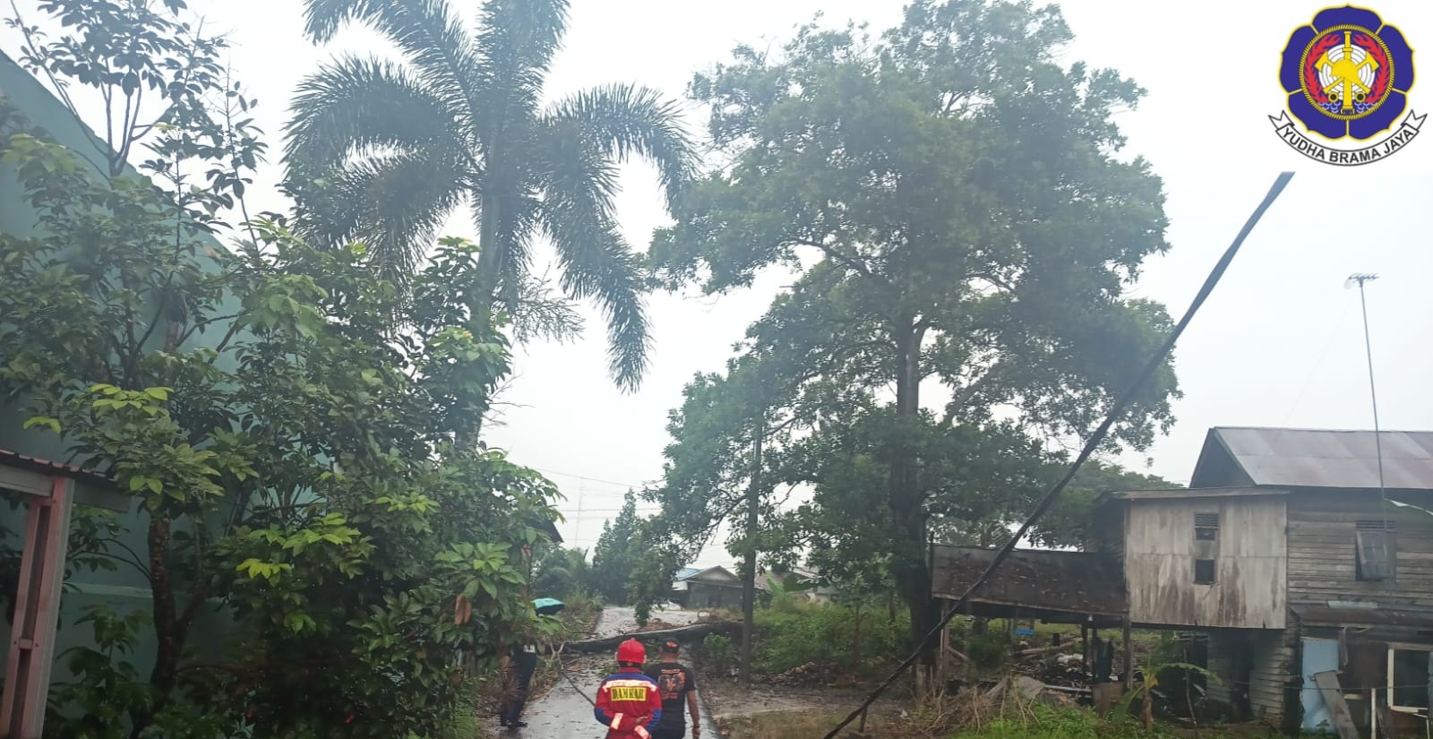 Pohon tumbang sempat mengganggu pengguna jalan di Jalan Perjuangan Gang Nusa Indah 5 Desa Sungai Sipai Kecamatan Martapura, Sabtu (27/12/2025) pagi.