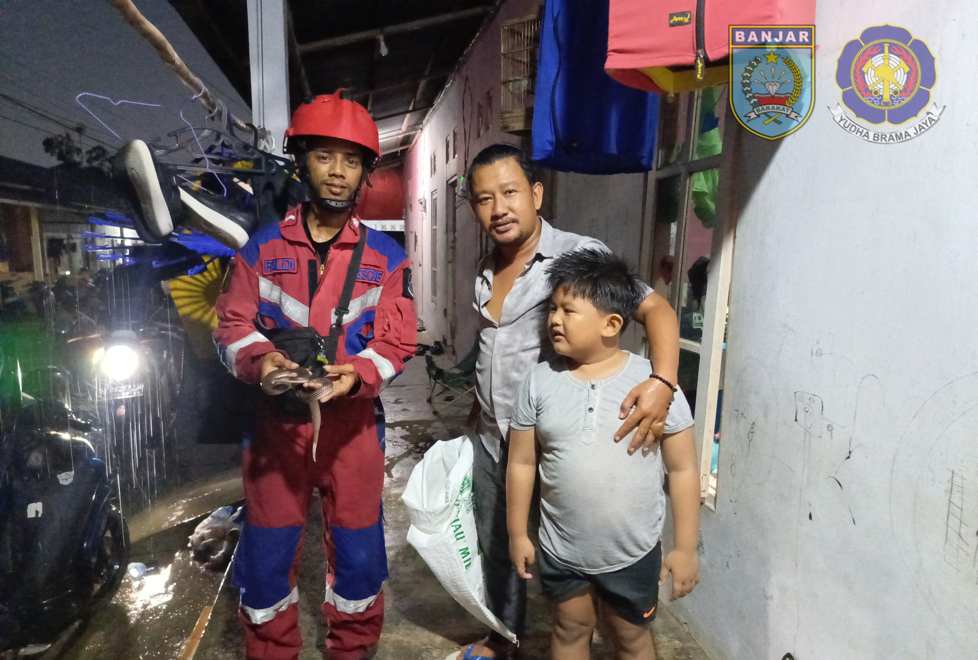 Petugas Damkar Banjar berhasil menangkap ular pelangi berukuran ± 80 cm di Jalan Kenangan Gang Mawaddah, Sabtu (27/12/2025) malam.