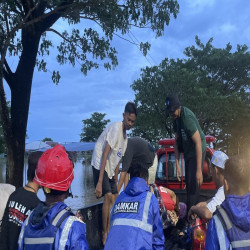 Kasyaf menambahkan saat mengevakuasi warga ketinggian air 1 meter satu lutut orang dewasa, dievakuasi digunakan dengan tandu.