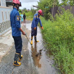 BANJAR, InfoPublik - Petugas Dinas Pemadam Kebakaran dan Penyelamatan (DPKP) Kabupaten Banjar berhasil menangkap ular phyton/sanca batik berukuran ± 2 meter, di Jalan Ahmad Yani KM 10 Tatah Amuntai Permai Komplek Zahra Green Residenci Blok C1 Nomor 14 Kecamatan Kertak Hanyar, Selasa (6/1/2026)
