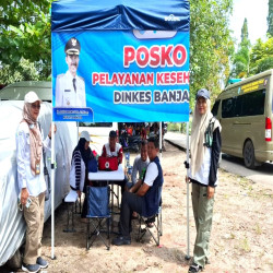 Pelaksana Tugas (Plt) Kepala Dinkes Banjar dr. Widya Wiri Utami bersama tim Pelayanan Kesehatan (Yankes) turun langsung memberikan pelayanan berupa pemeriksaan tekanan darah, pemberian multivitamin, serta pengobatan bagi warga yang membutuhkan. Layanan ini disambut antusias oleh masyarakat yang hingga kini masih bertahan di posko pengungsian.