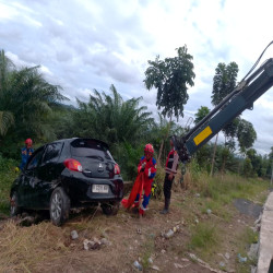 Kecelakaan mobil didapatkan info dari grub-grub, saat sampai di lokasi ada korban 1 orang supir mengalami luka ringan. Mobil terperosok, jauh keluar jalan raya.