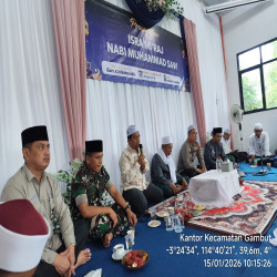 GAMBUT, InfoPublik – Kecamatan Gambut menggelar Peringatan Isra Mikraj Nabi Besar Muhammad SAW dan Haul ke 21 Abah Guru Sekumpul di Aula Kecamatan Gambut, Kamis (15/1/2026).