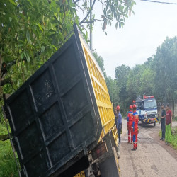 Damkar Banjar Tangani Mobil Truk Terperosok