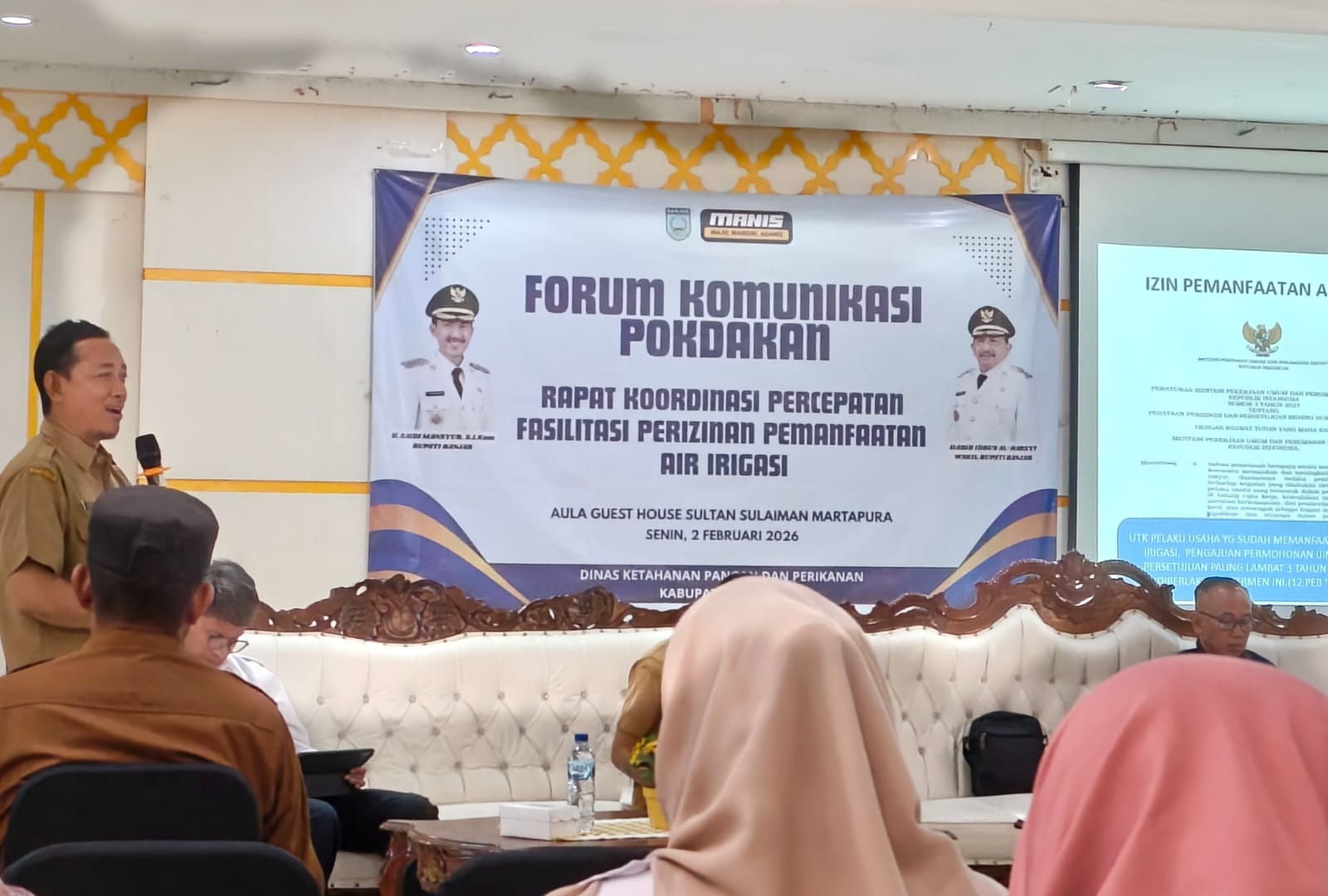 Kegiatan ini berlangsung di Aula Guest House Martapura, Kabupaten Banjar, dengan tujuan mempercepat proses perizinan agar pembudidaya ikan dapat memanfaatkan sumber daya air irigasi secara legal dan berkelanjutan.