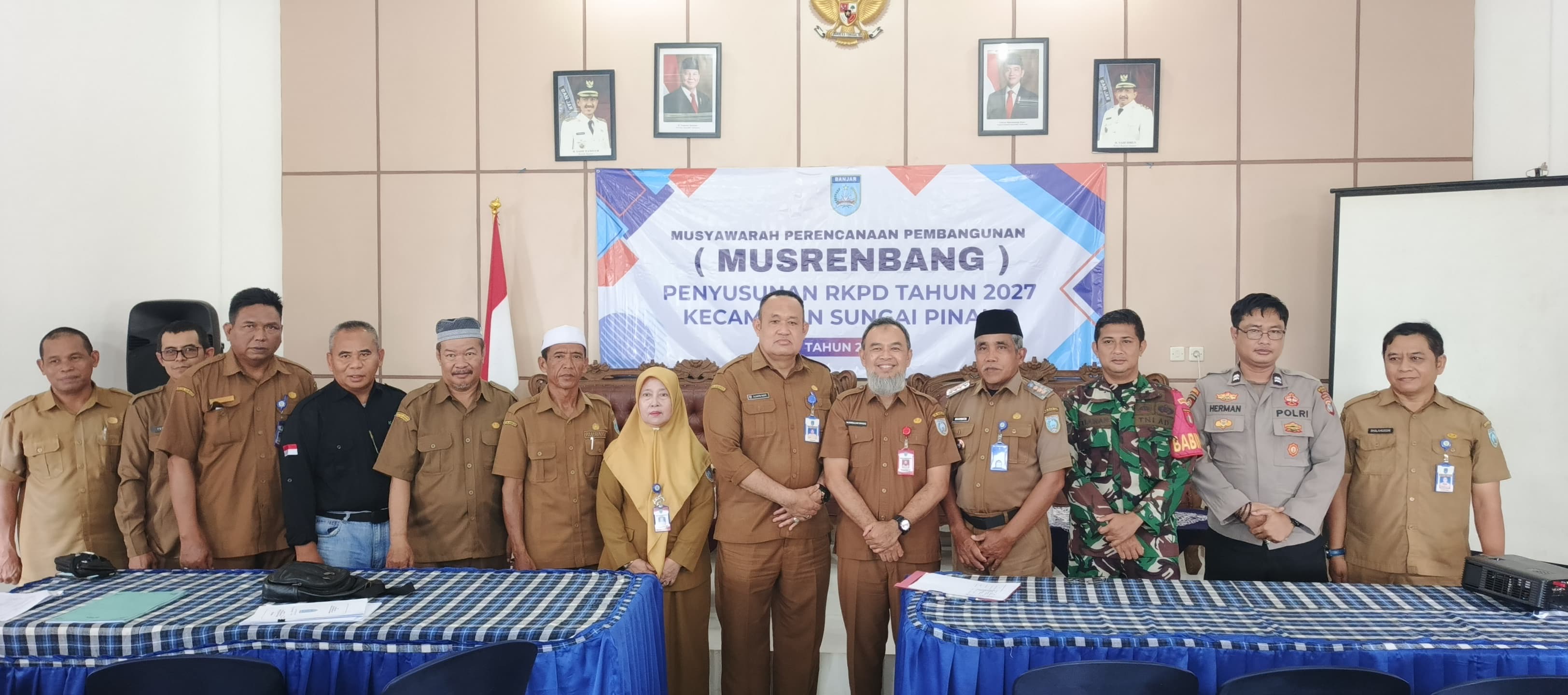 Pemerintah Kecamatan Sungai Pinang menggelar Musyawarah Perencanaan Pembangunan (Musrenbang) Kecamatan Sungai Pinang Tahun 2026 sebagai bagian dari tahapan penyusunan Rencana Kerja Pemerintah Daerah (RKPD) Kabupaten Banjar Tahun 2027. Kegiatan berlangsung di Aula Kecamatan Sungai Pinang, Selasa 3 Februari 2026.