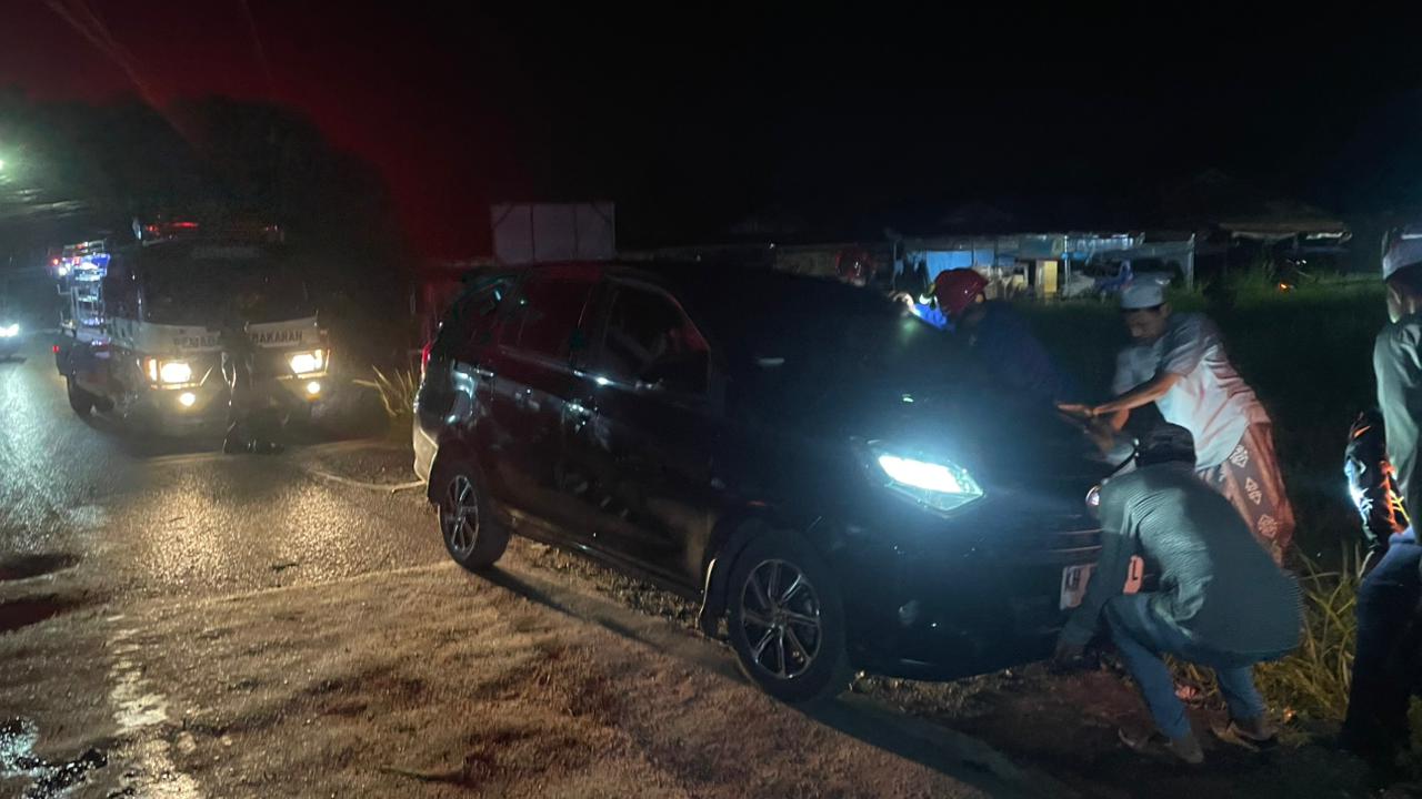Sebuah mobil SUV terperosok di Jalan Sukarama Komplek Suka Indah Kelurahan Sekumpul Kecamatan Martapura, Selasa (17/2/2026) pukul 21:52 wita.